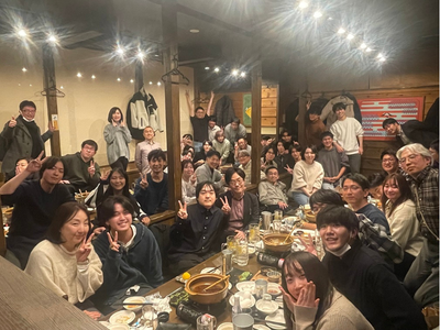 2025年も仕事納めの最終日、親睦会メンバの声掛けにより部署や世代に関係なく50名近い社員が集まり、忘年会が行われました。他部署との交流を深めるための懇親会補助制度を利用しました。